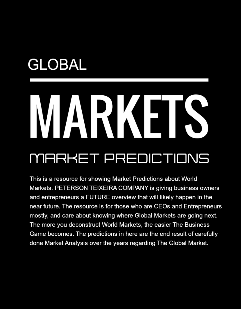 WELCOME TO MARKET PREDICTIONS This is a resource created for CEOs and Entrepreneurs. The Market Predictions section is a gathering and compilation of future potential Market Events that include several industries, especially Digital Markets. It’s being published by Peterson Teixeira Company to help you connect the dots between industries and map The International Market faster, giving you a broader vision of future events and almost everything that rules business today. The goal is to show all potential scenarios that may happen in the near future for companies and entrepreneurs, so they can act with more precise information on their daily activities on The Market. That’s something that executives and entrepreneurs need to know about in order to make the best business decisions possible in this crazy marketplace that changes every single day. Almost all information you’re about to see is strongly interconnected, giving you many business insights and warnings, because it’s curated by PETERSON TEIXEIRA COMPANY, an International Consulting Business. The wider view of the market takes a lot more work, but once this level is achieved, it’s easier to predict to where the market is going, and what you should do next. These are the predictions you can currently read about: